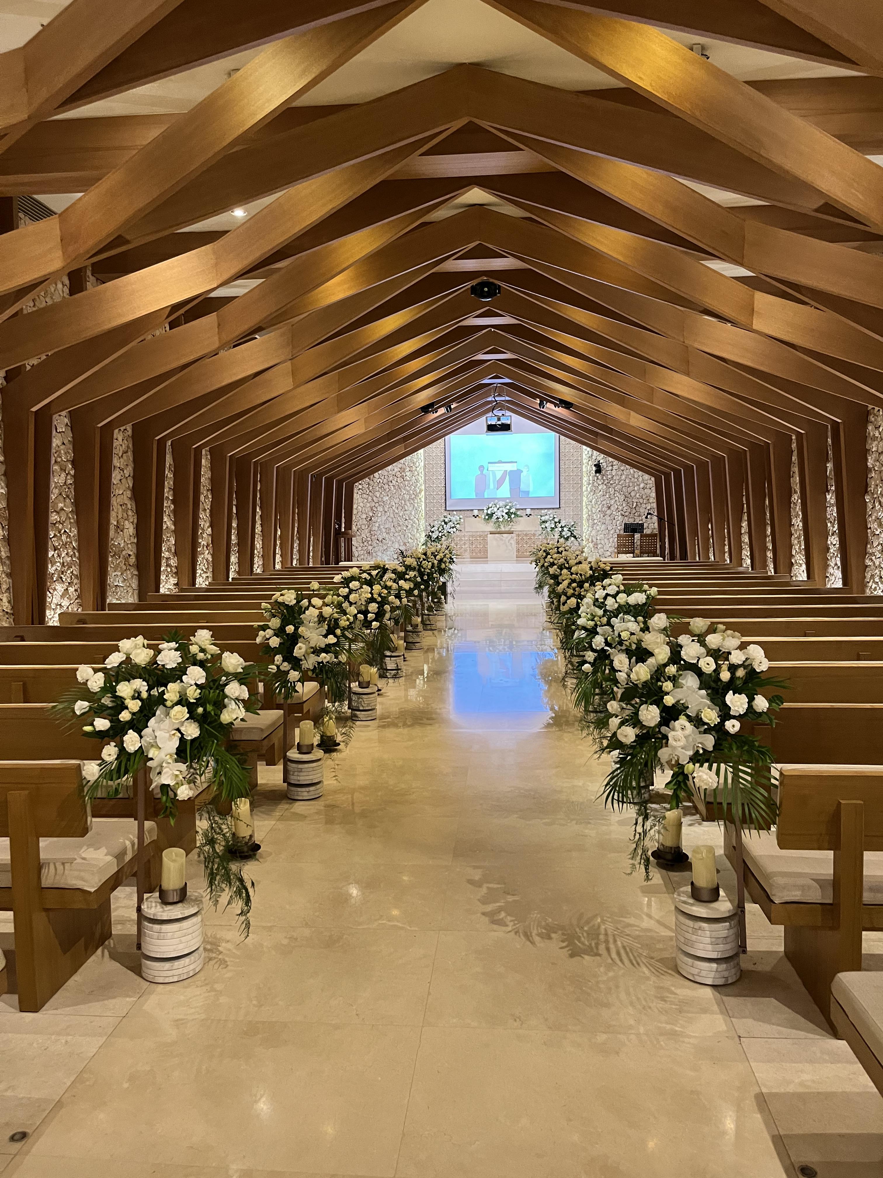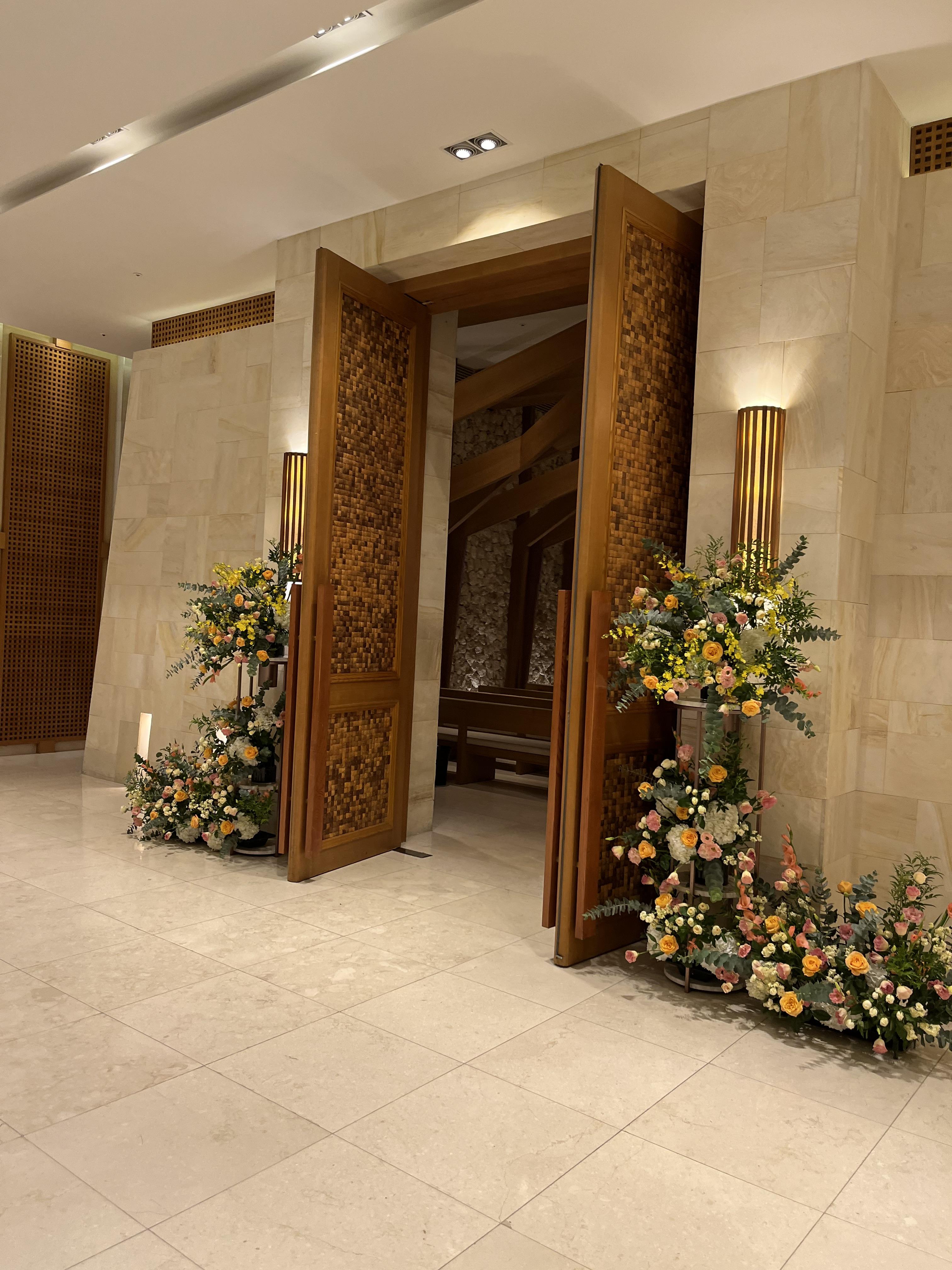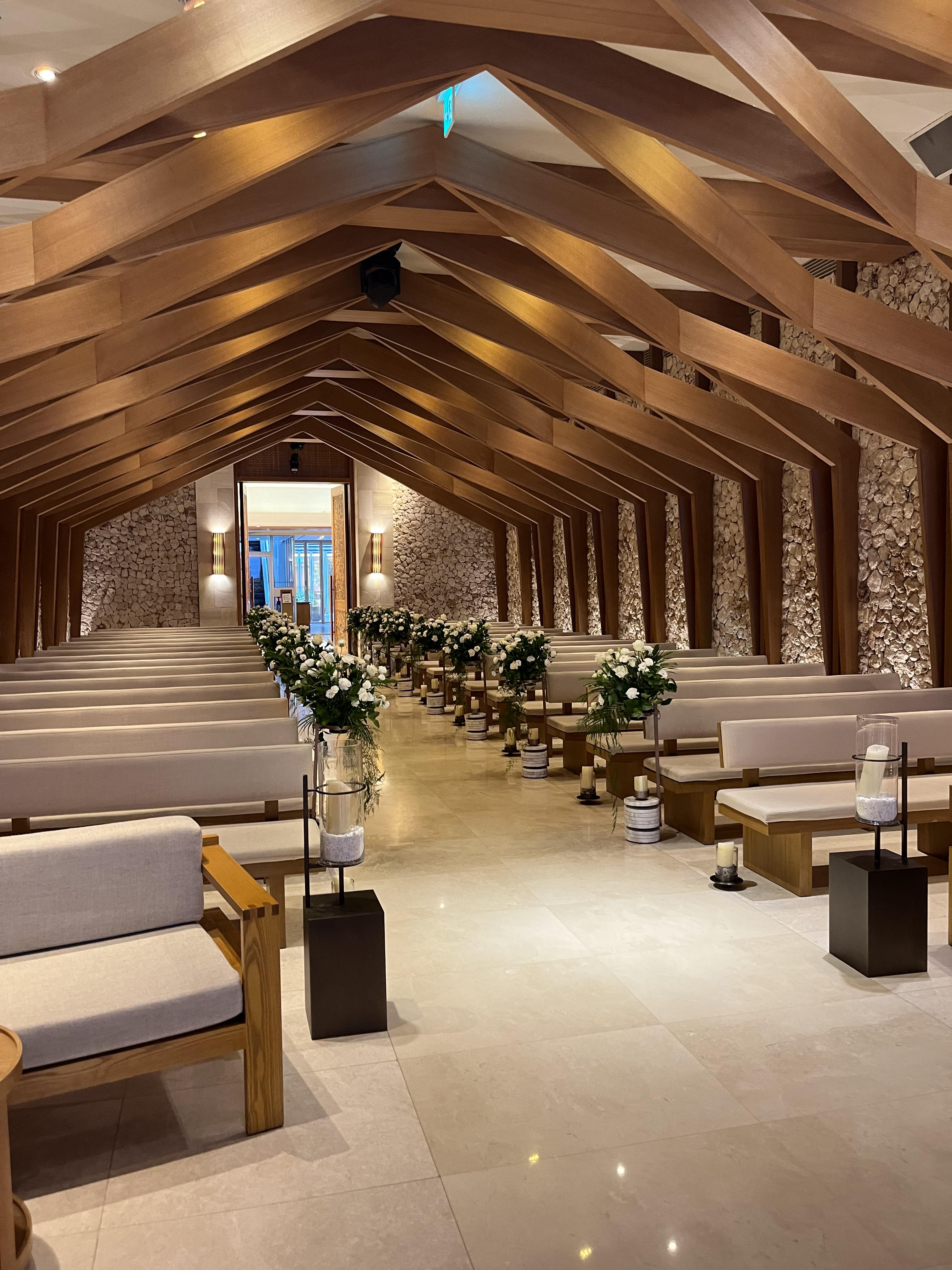 채플형의 아담하고 따스한 느낌의 웨딩홀은 화려한 예식보다는 정갈하고 단아한 식장을 찾는 커플들에게 잘 어울려 보였다.