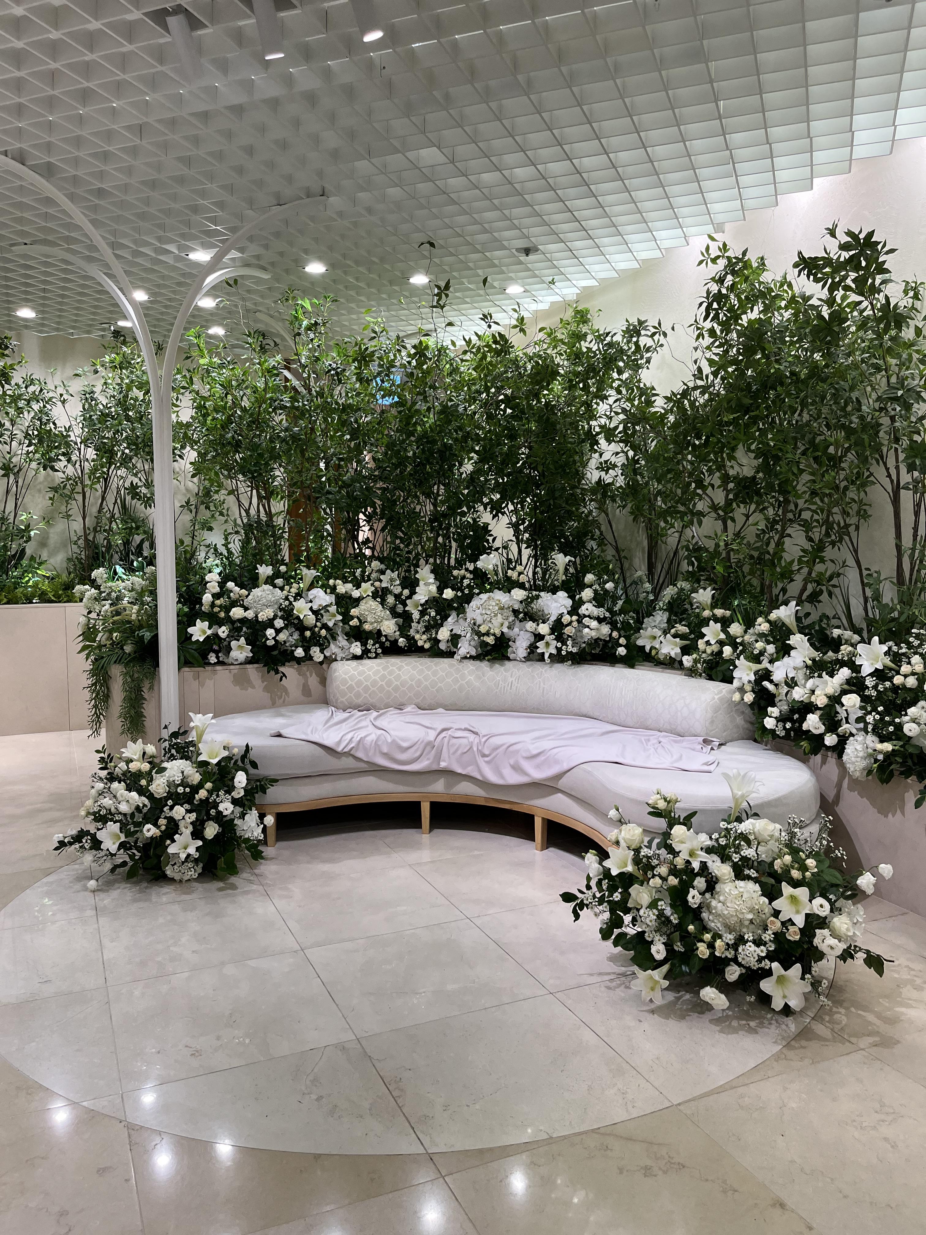 신부가 일찍 도착하였을 경우를 대비해 조그만 예비 신부대기실이 있고 메인 신부대기실은 웨딩홀 옆쪽으로 살짝 숨겨져 있는 느낌이었는데 꽃장식이 화려하고 신부대기실을 향하는 길부터 꽃향기가 가득한 곳이기도 했다.