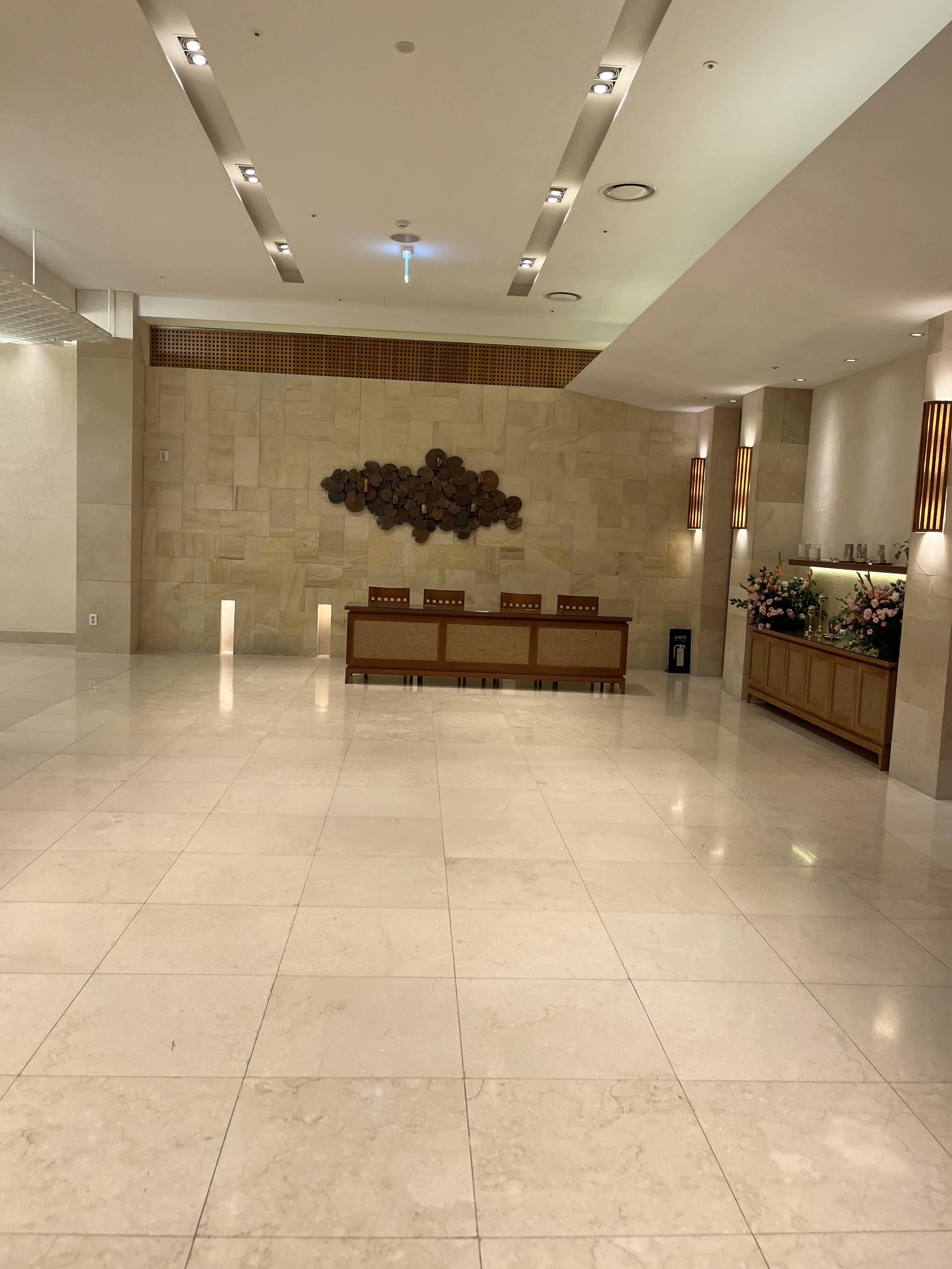 아무래도 지하에 위치하고 있다 보니 조금 답답한 느낌이 없지 않았고 비교적 넓지 않은 웨딩홀이기도 하였다.