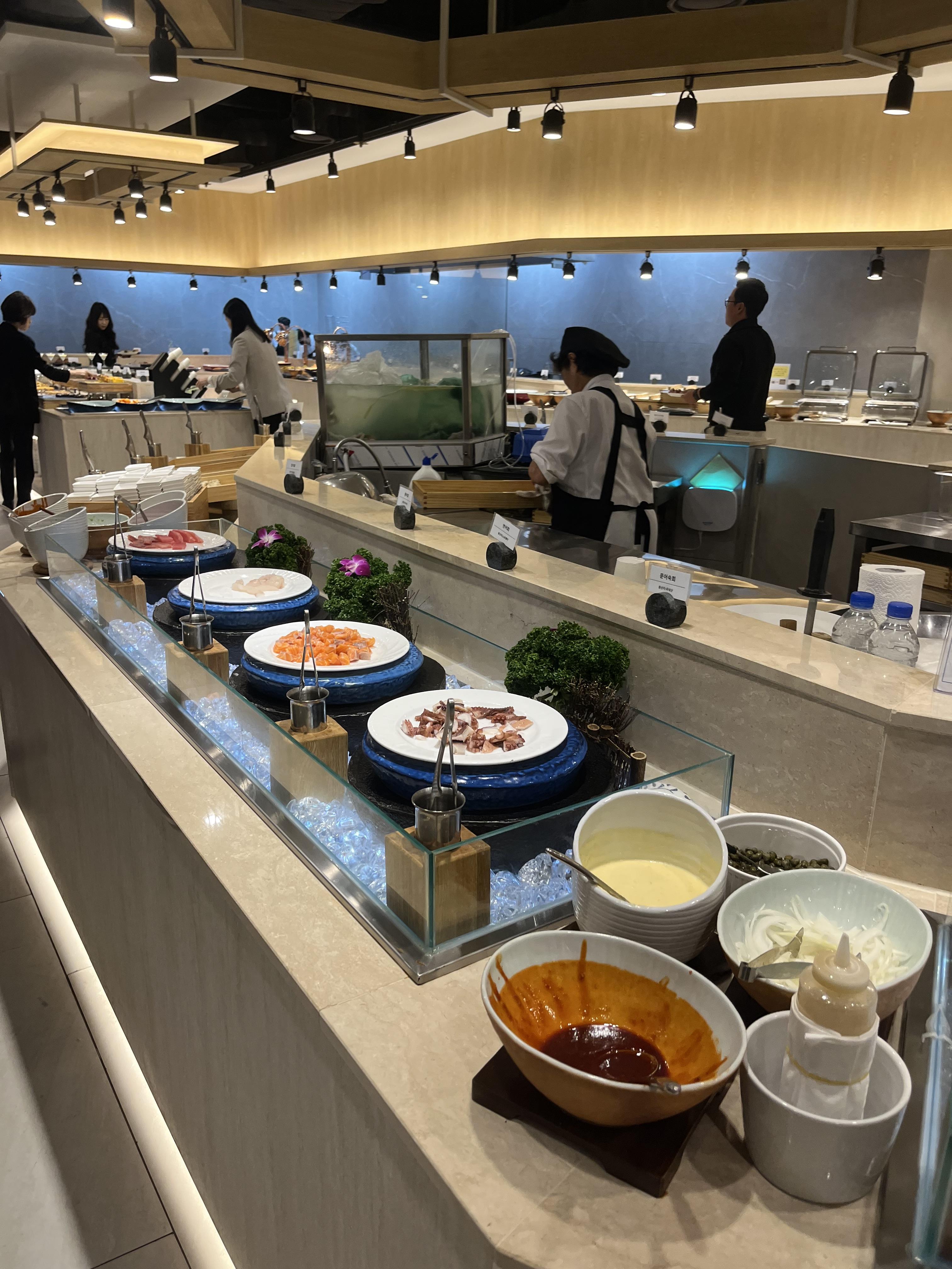 예전에는 한정식으로 나왔으나 현재에는 뷔페로 연회장을 리모델링하여 100여가지의 메뉴를 제공하고 있다.