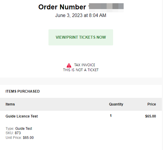 테스트를 신청하게되면 신청완료 메일을 받을 수 있다. 신청비용은 65CAD