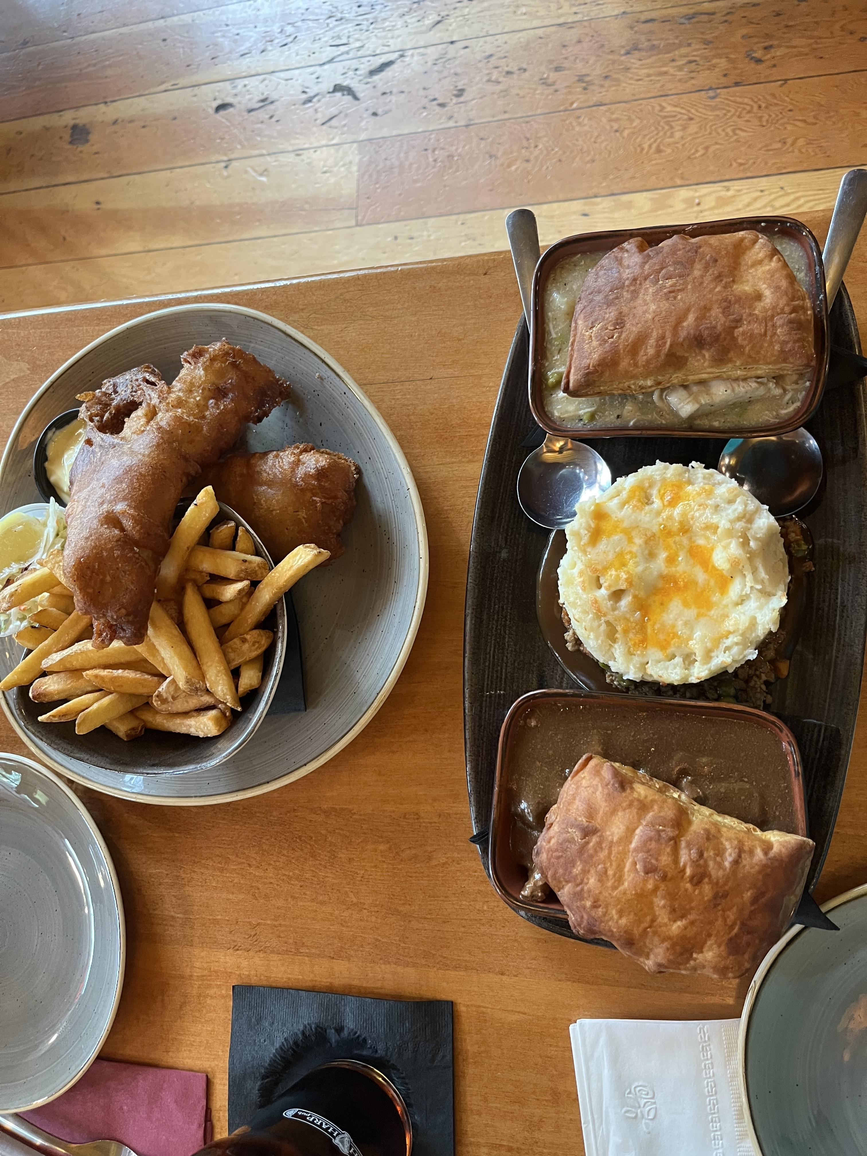 피시앤칩스와 미트파이를 시켜서 먹었는데 피시앤칩스의 양이 상당히 컸고 맛도 좋았다.
