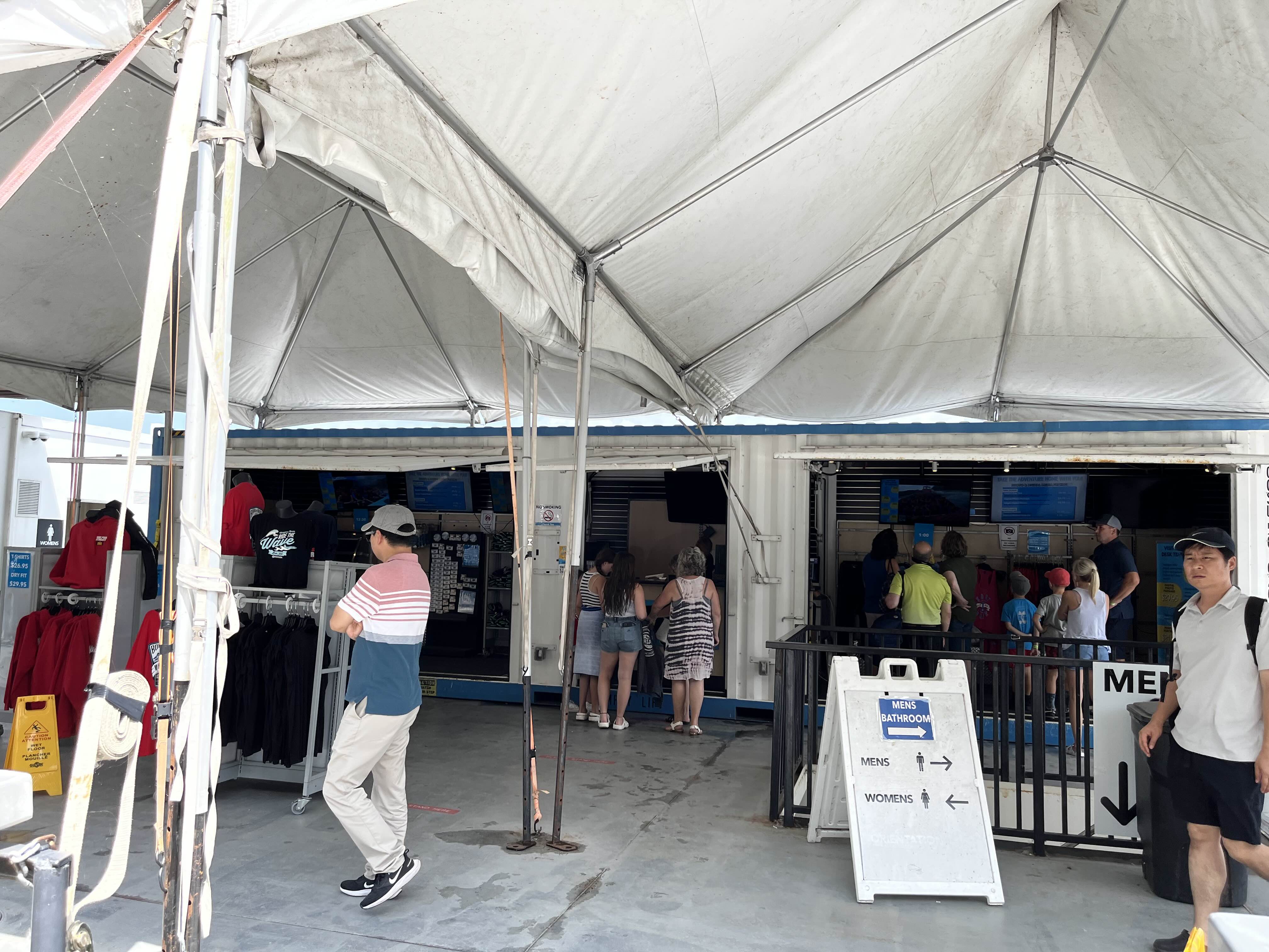 카운터 오른쪽으로 보면 화장실과 티셔츠 등을 판매하는 곳이 있고 탈의실도 같이 있어서 환복은 여기서 하면 된다.