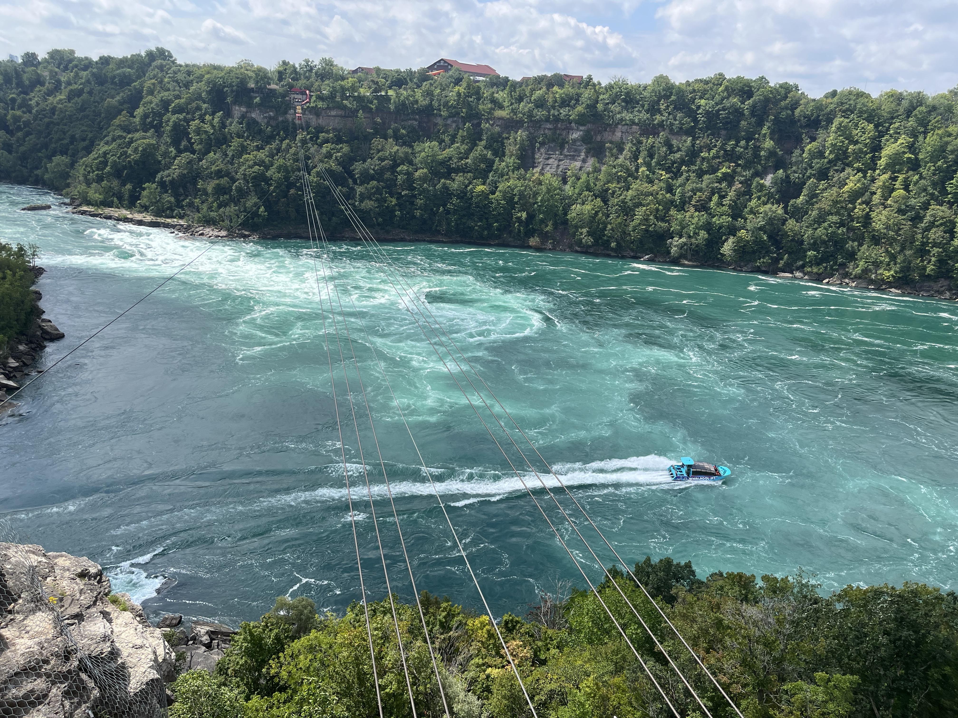 탑승시간은 약 45분 정도로 나이아가라 강의 급류를 뚫고 가면서 강의 파도를 온몸으로 맞게 된다. 그렇기 때문에 온몸이 다 젖게 된다. 나이아가라 월풀까지 다녀오는데 월풀은 너무 위험하므로 들어가지는 않고 앞에서 보고 오게 된다.