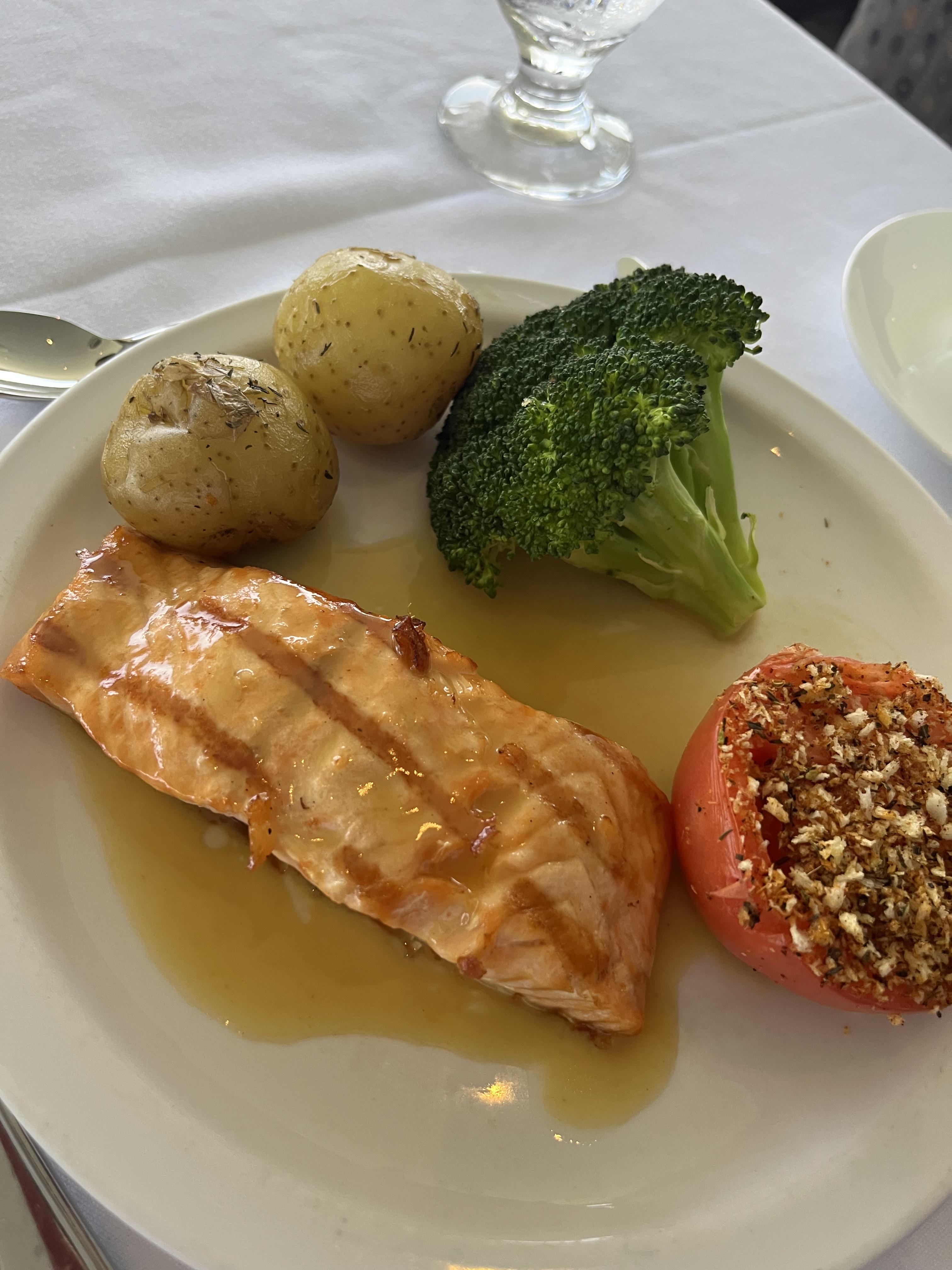 메뉴는 소고기스테이크, 연어, 치킨이 있고 아이들 메뉴로는 스파게티가 있다.