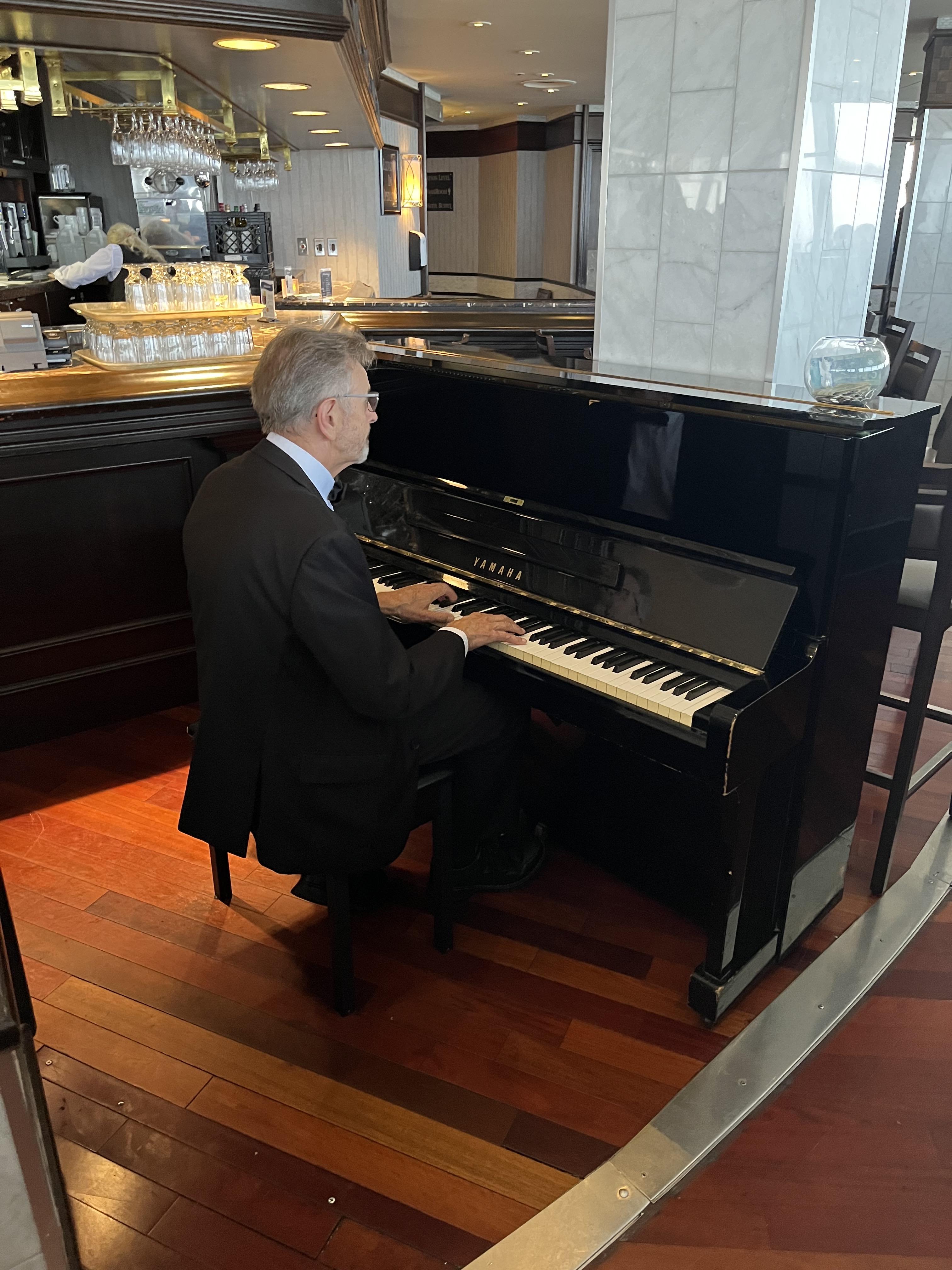 (식사를 하고 있는데 멋진 피아노 연주를 해주어서 분위기가 더욱 좋아졌다.)