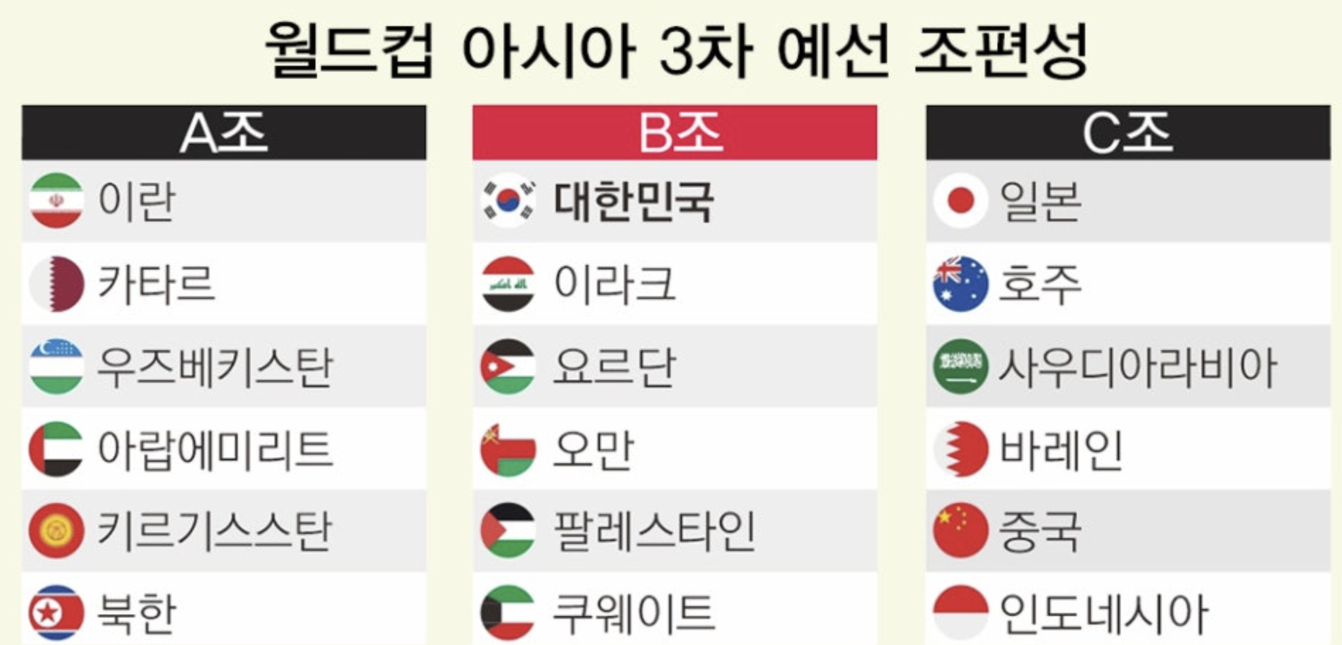 3차 예선은 18개 팀이 6팀씩 3개 조로 나뉘어 홈 앤드 어웨이 방식으로 경기를 치릅니다. 각 조의 상위 2팀은 월드컵 본선에 직행하며, 조 3위와 4위 팀은 4차 예선과 플레이오프를 통해 남은 2.5장의 티켓을 놓고 경쟁합니다