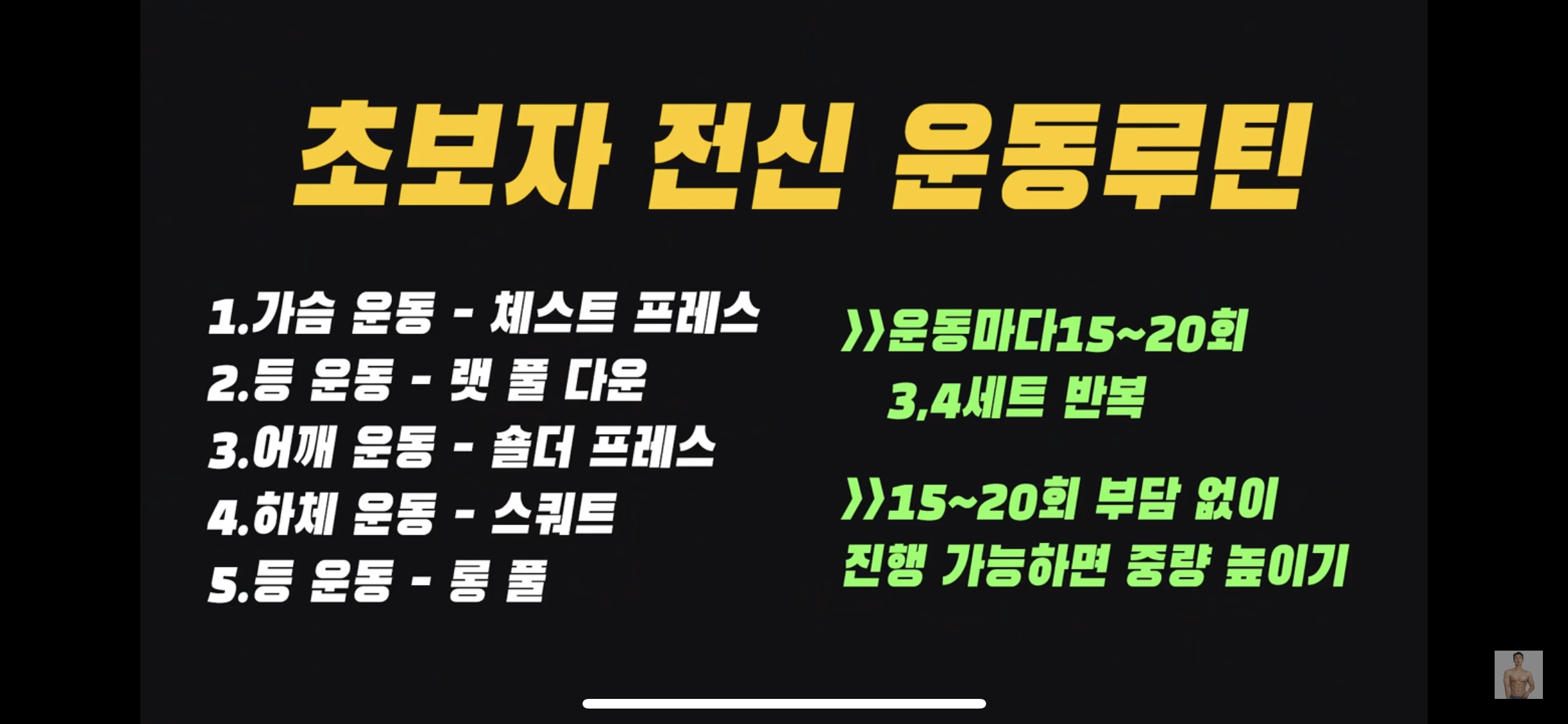 PT를 해봐도 좋겠으나 비용도 만만치 않고 무엇보다 나는 직업 특성상 특정 시간을 맞추기가 어려우므로 유튜브나 그동안 살아오면서 들었던 정보들로만 운동을 시작해보려 한다.