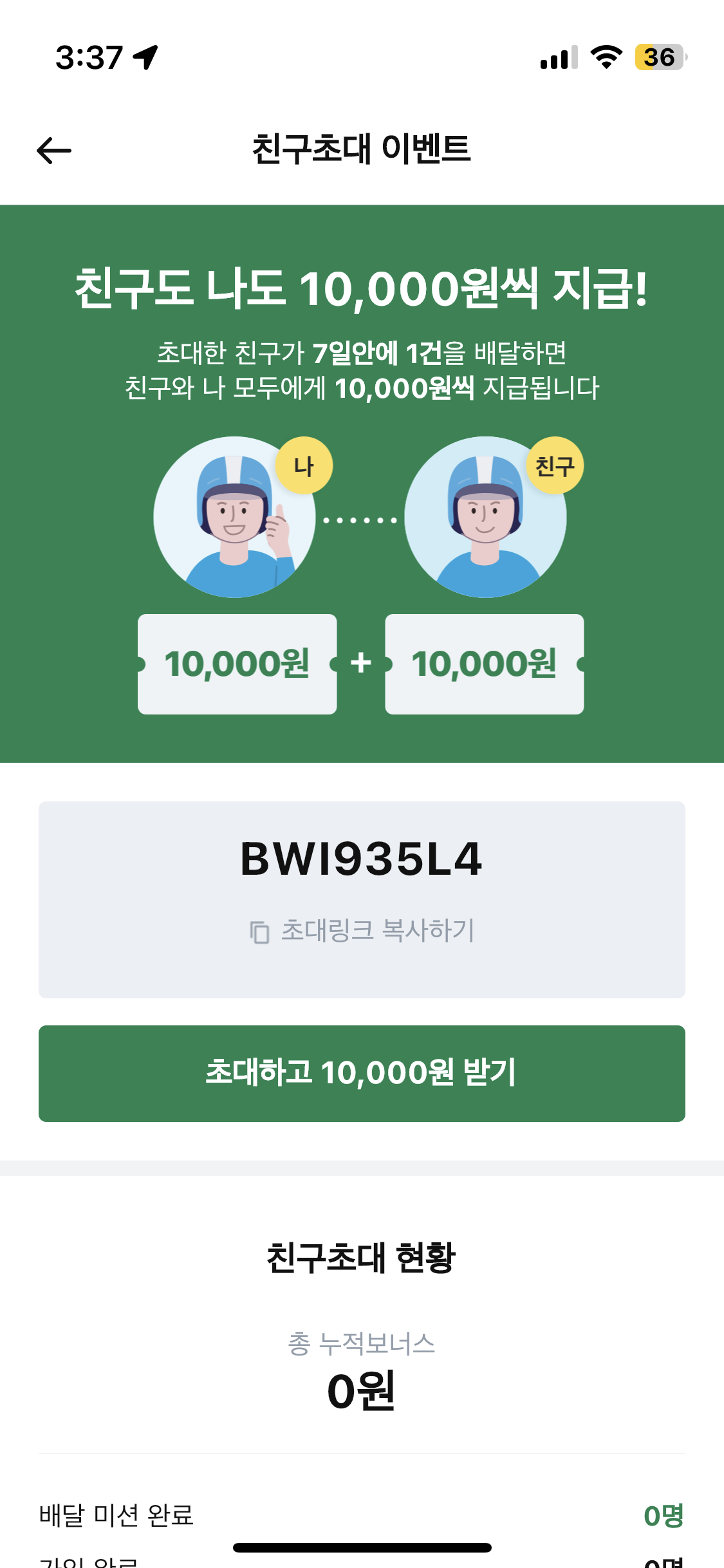 쿠팡이츠배달파트너 친구 초대코드 :BWI935L4