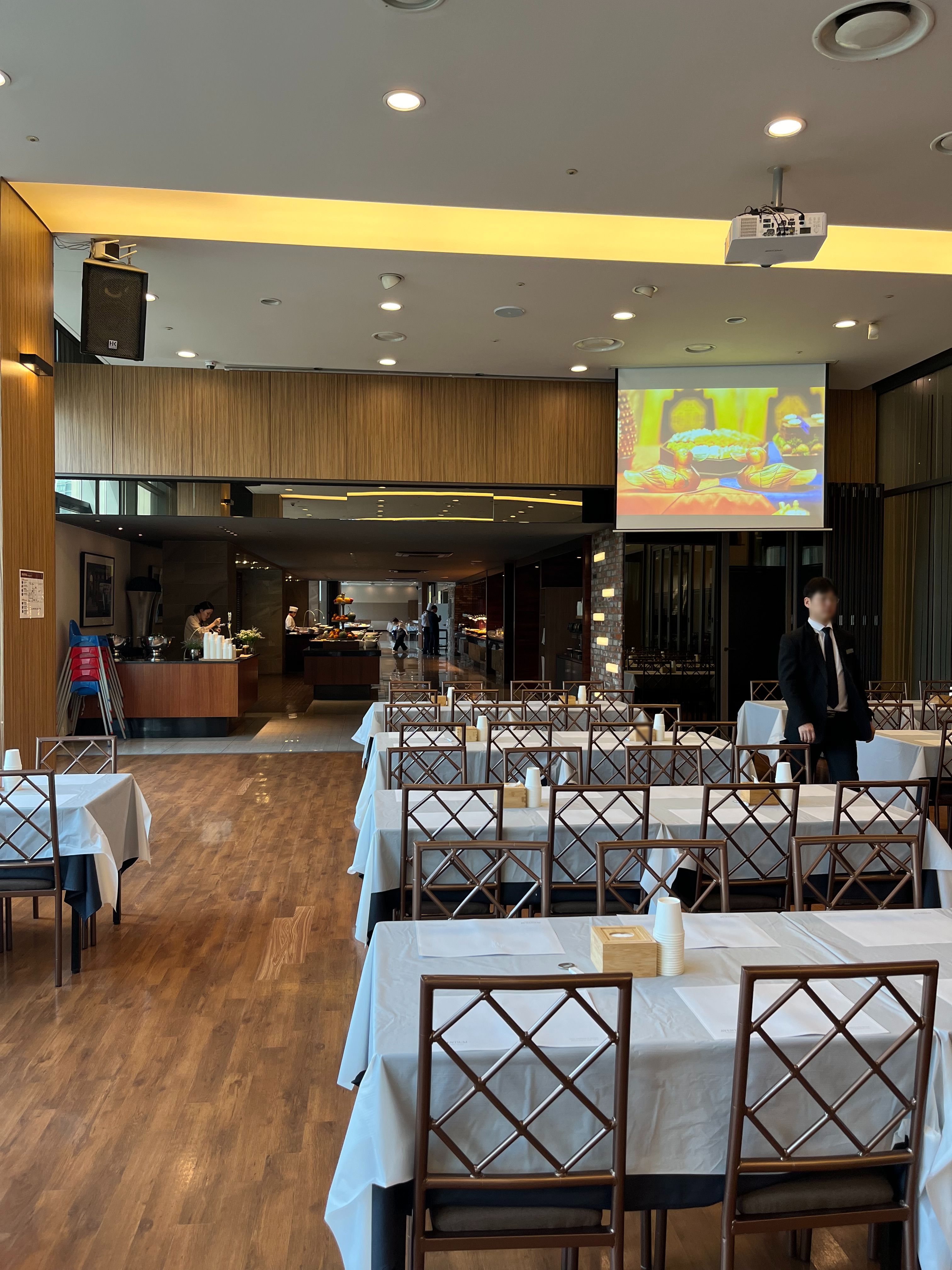 연회장은 웨딩홀 바로 옆에 붙어있어서 번거로운일 없이 이동할수 있어 좋고 700석 규모로 식사를 하면서 웨딩 생중계를 볼수 있는 곳이다.
