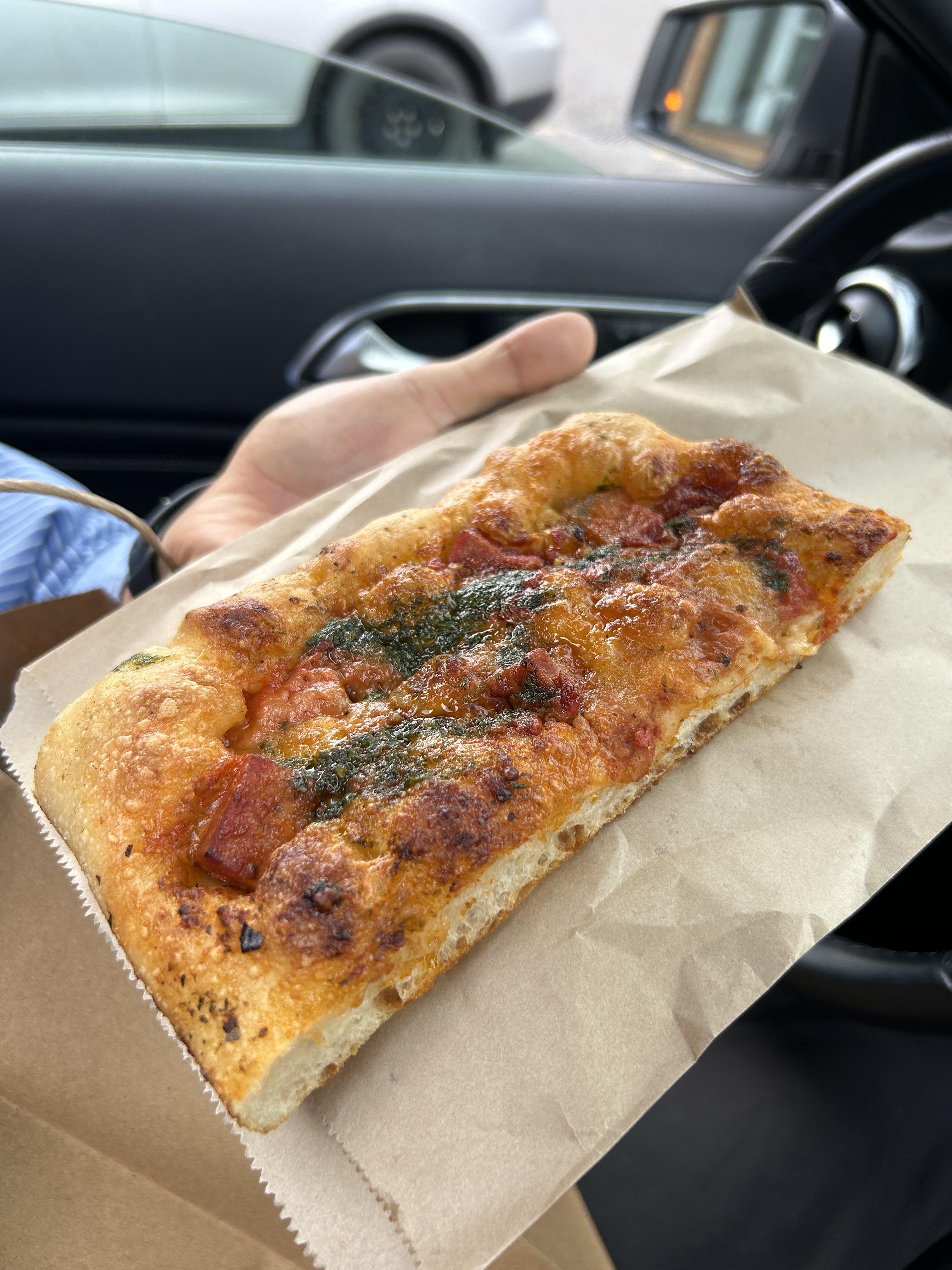 내가 갔을때는 약 10종류의 빵이 있었는데 버터 크로와상, 시나몬 크로와상, 피자 빵 등이 있었다.