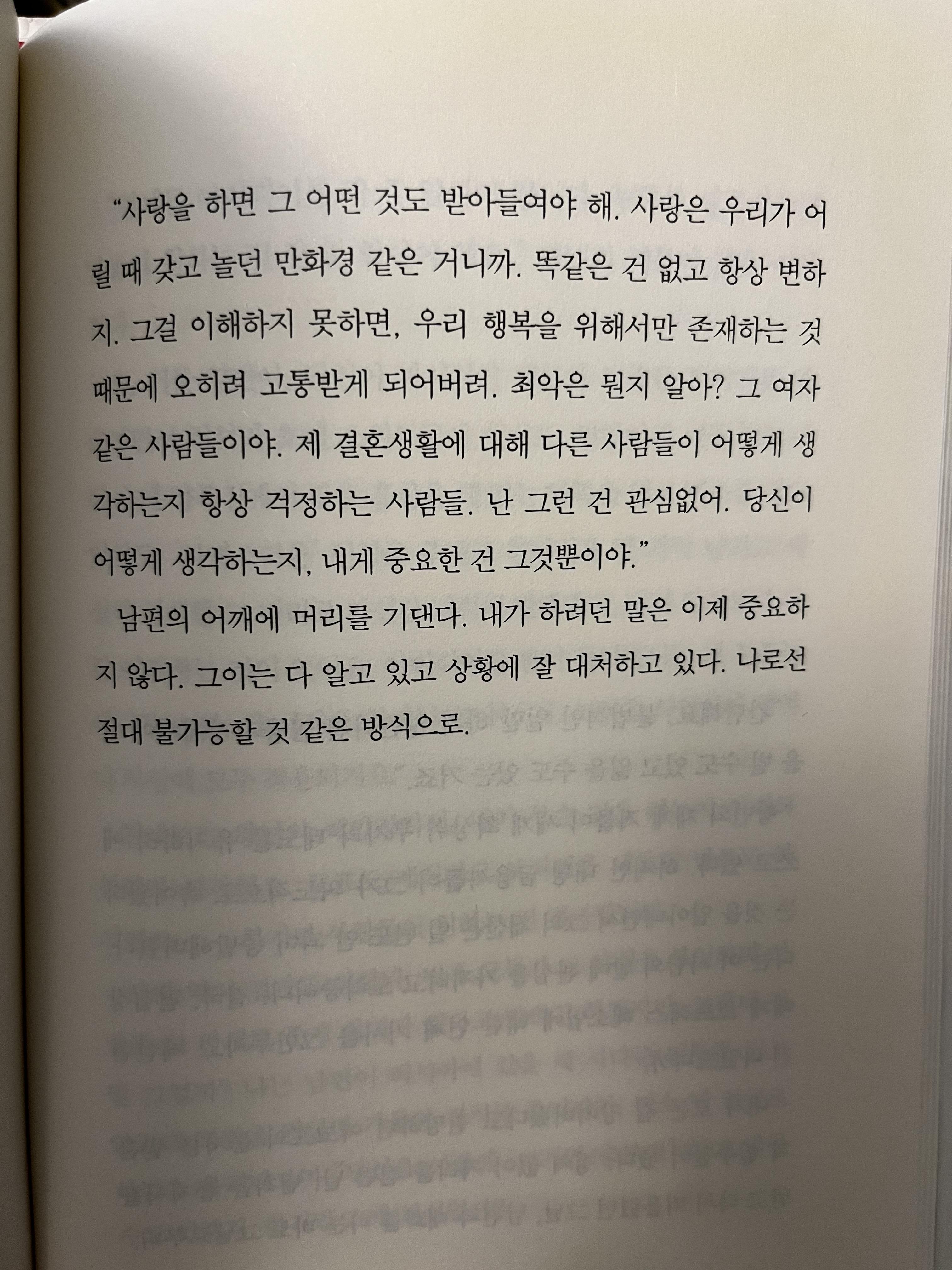 전반적으로 이 책은 인간의 본성과 욕망에 대한 진솔한 이야기를 담고 있다. 불륜이라는 주제를 다루고 있지만, 이 책을 읽고 나면 불륜이라는 것이 어떤 것인지에 대한 단순한 생각보다는 더 깊이 생각해 볼 수 있게 될 것이다.