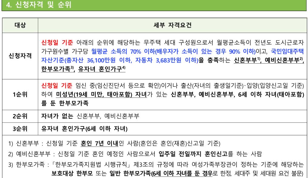 무주택 구성원으로 월평균 소득이 전년도 도시근로자 가구원별 가구당 월평균 소득의 70%