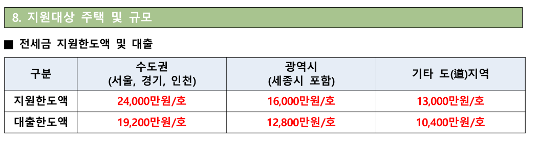 Ex)1억 5000만원의 전세금이라면 80%인 1억2000만원을 지원받게 되어 3000만원만 부담하면 됩니다.