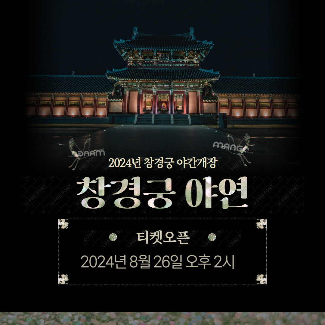 2024년, 창경궁에서 열리는 야연(夜宴)은 고궁의 아름다움을 밤하늘 아래에서 경험할 수 있는 특별한 행사입니다. 고즈넉한 고궁의 정취와 함께하는 이 야연은 전통문화와 현대적 감각이 어우러지는 특별한 순간을 제공합니다.