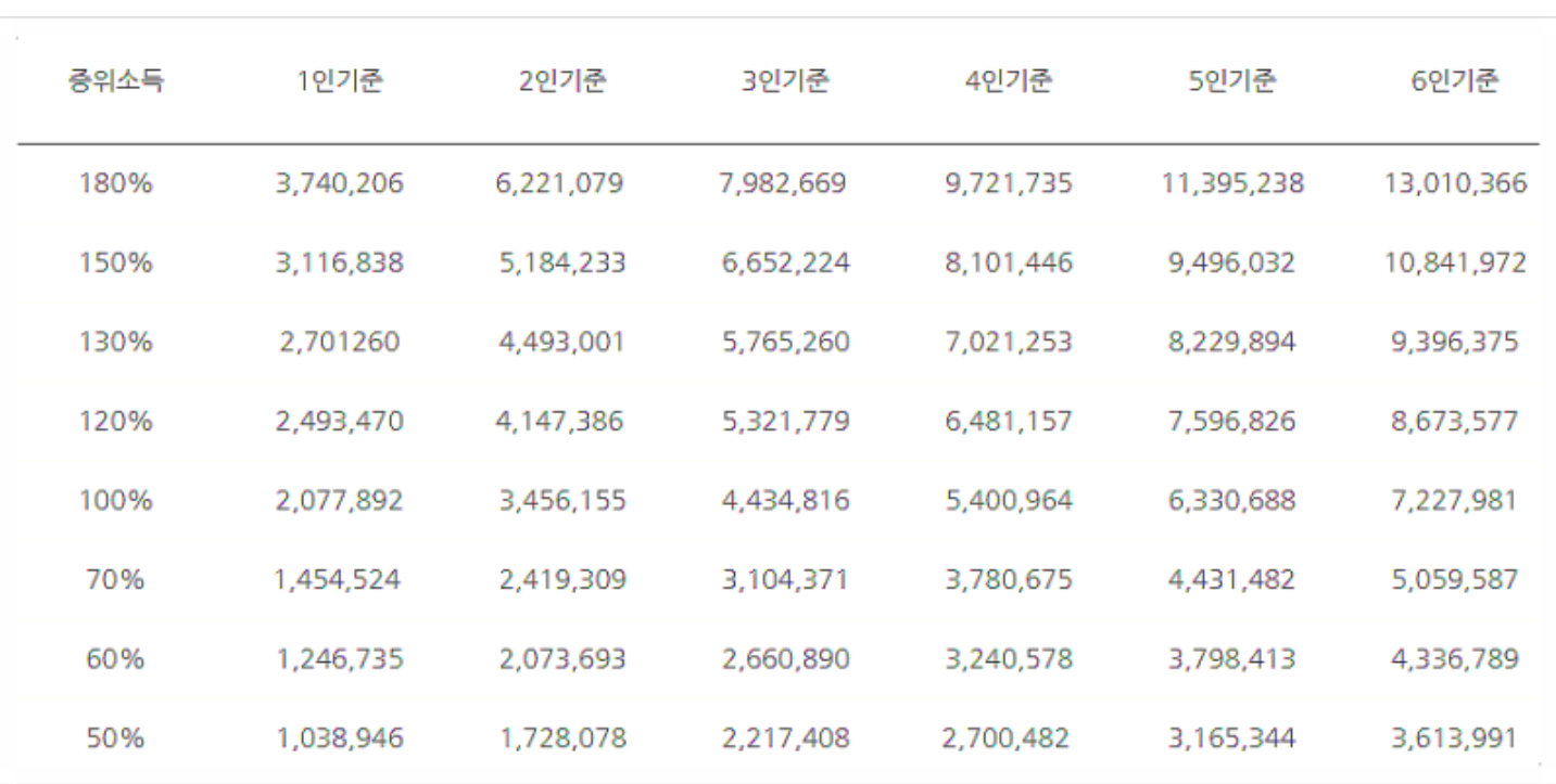2024년 가구 중위소득 기준표